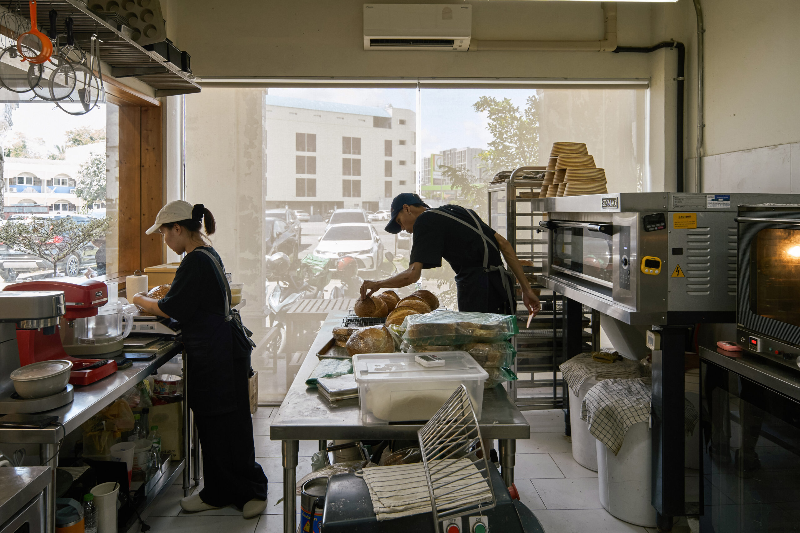 Our open bakery, located on the first floor, fills the café with the inviting aroma of freshly baked goods throughout the day. Set behind glass, it allows guests to watch every step of the process — from mixing and kneading to shaping and baking — creating a live, behind-the-scenes experience that brings warmth and life to the space.